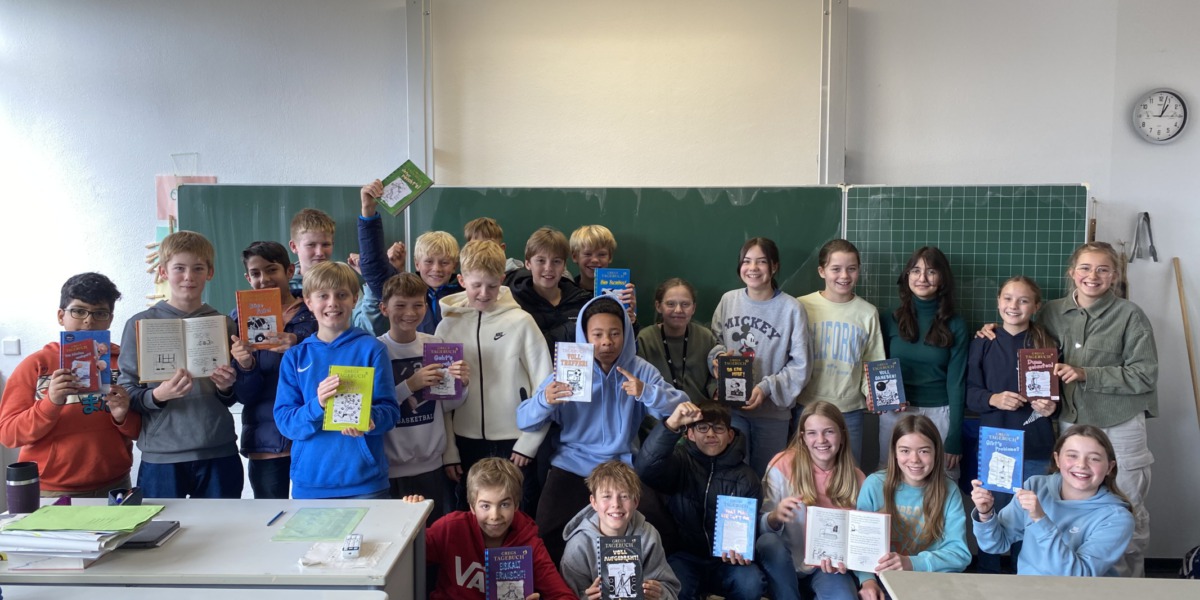 Um ein Treffen mit dem berühmten „Gregs Tagebuch“ Autor Jeff Kinney, ein ZEIT LEO-Abo und eine komplette „Gregs Tagebuch“-Reihe gewinnen zu können, konnte man ein Bewerbungsvideo einschicken. Leider hat unser Video es nicht auf den ersten Platzt geschafft. Jedoch wird jeder Klasse, die unter den 50 besten ist – so wie wir – ebenfalls eine Bücherreihe von „Gregs Tagebuch“ geschenkt.