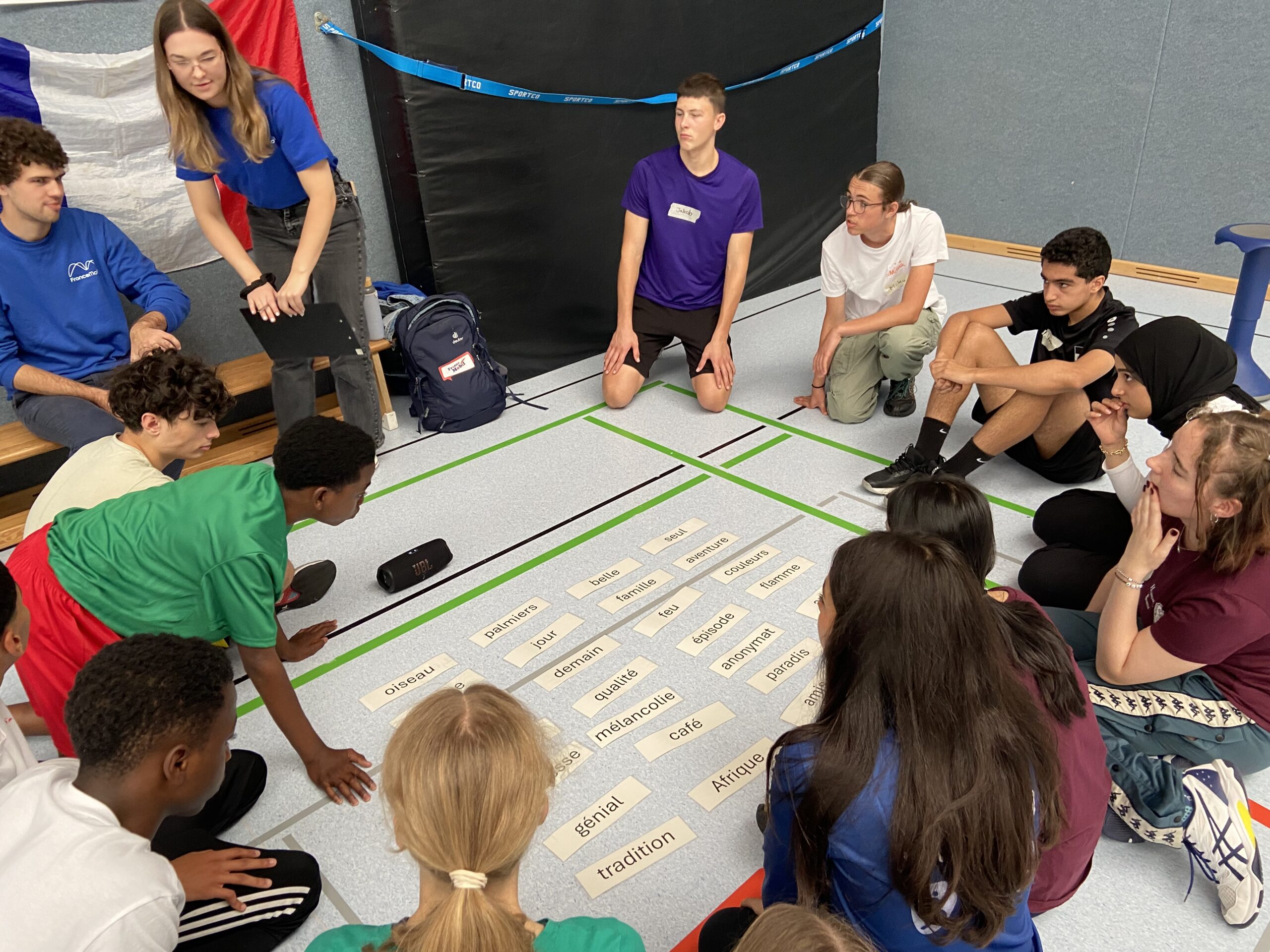 Im Mittelpunkt stand die sportlich-sprachliche Olympiade „Jeux westphaliens“. In schulübergreifenden Teams mussten die Jugendlichen ihre sportlichen Fähigkeiten unter Beweis stellen und gleichzeitig ihre Französischkenntnisse einsetzen. An den verschiedenen Stationen, geleitet von französischen Muttersprachlern, gab es alles von Tanz und Gesang bis hin zu Ball- und Geschicklichkeitsspielen.
