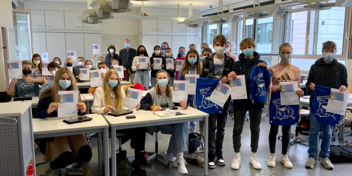 Vier erste Plätze, 14 dritte Plätze und Urkunden über die erfolgreiche Teilnahme für fast alle anderen: Die 8f freut sich über ihre tollen Ergebnis beim 15. “Informatik-Biber”-Wettbewerb, wo die Klasse für das Pascal-Gymnasium punktete. In dieser Woche konnten durch Schulleiter Ralf Bramaier die Preise überreicht werden.