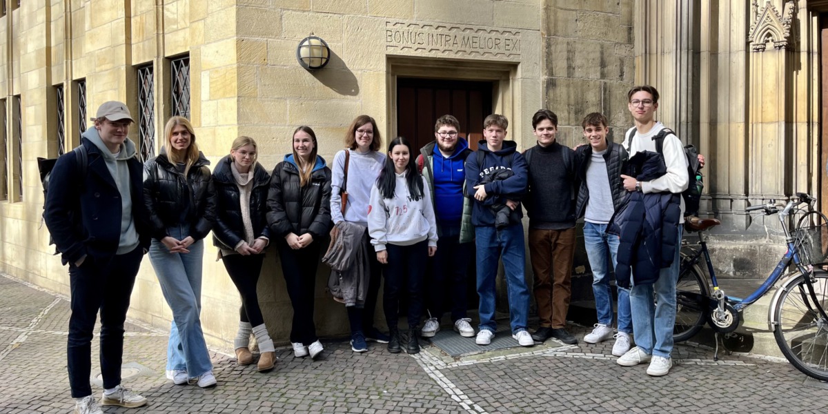 Alles in Allem war es ein gelungener Unterrichtsgang, bei dem wir oft übersehene lateinische Inschriften kennengelernt und von Frau Vahrenhold sonstige Geschichten über Münster und seine Historie auf den Weg mitbekommen haben – und wir konnten unser Latinum und die letzten fünf Jahre gebührend mit einem Eis feiern.”