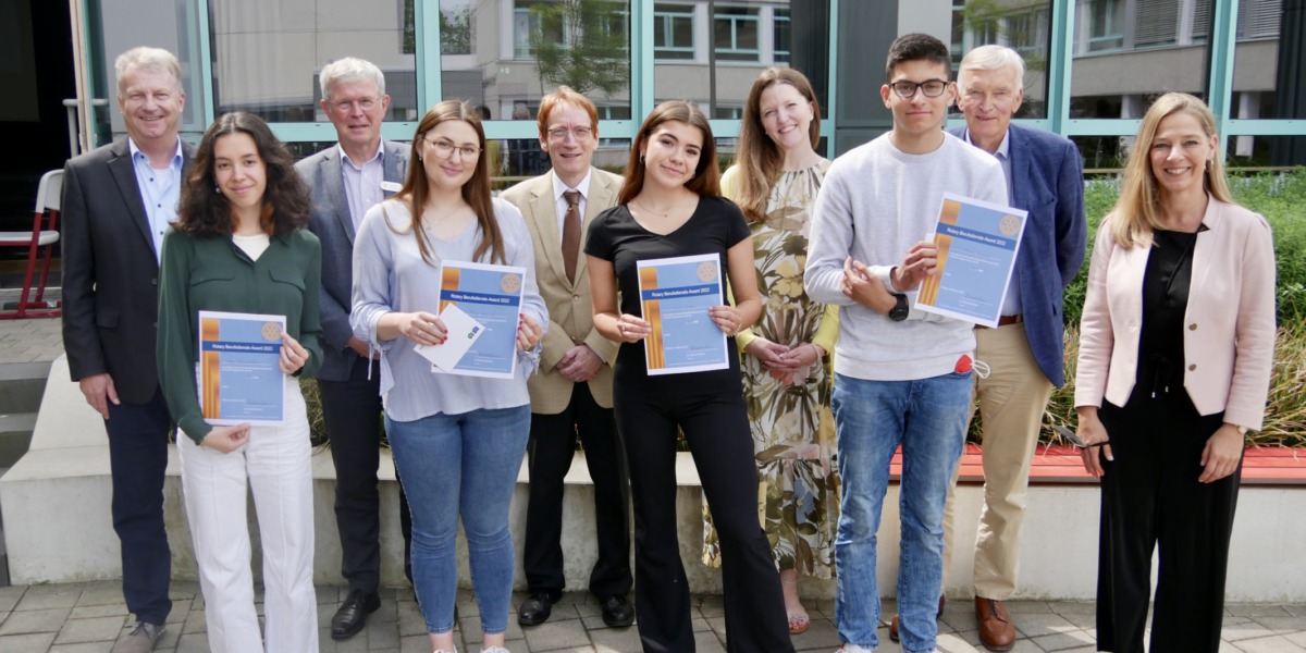 Nach zweijähriger Corona-Zwangspause konnte am 19. Mai 2022 wieder der Rotary Berufsdienste-Award stattfinden: Dafür waren wieder vier der besten Arbeiten der diesjährigen Q1 vorgeschlagen worden. Für die Kandidat*innen bedeutete dies, dass sie (neben dem normalen Schulalltag samt Unterricht, Klausuren und Abendveranstaltungen wie Theateraufführungen oder Konzerten) ihr Opus noch einmal komplett überarbeiten mussten, um es in Form eine Power-Point-Präsentation zu einem Vortrag umzugestalten, den sie den Schüler*innen der Jahrgangstufe EF in bis zu 15 Minuten langen Vorträgen präsentieren mussten – bewertet wurden sie dabei von eine fünfköpfigen Jury, bestehend aus den Rotariern Prof. Dr. Thomas Deitmer (Wissenschaftsverband, Generalsekretär Deutsche Gesellschaft für HNO-Heilkunde, Kopf- und Halschirurgie), Prof. Dr. Andreas Pfingsten (Institut für Kreditwesen WWU Münster) und Dr. Karl-Heinz Sümmermann (ehem. Vorstandsmitglied der Agravis Raiffeisen AG) sowie der stellvertretenden Oberstufenkoordinatorin Eva-Christina Eßer und Schulleiter Ralf Brameier.
