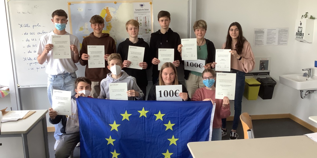 Der Europa-Kurs der Jahrgangsstufe 9 unter der Leitung von Dominik Pyka hat mit Erfolg am NRW-Schülerwettbewerb 2022 „Begegnung mit Osteuropa“ teilgenommen. Die Schülerinnen Laura Cichy und Marlene Reinsch haben sogar einen Siegerpreis in Höhe von jeweils 100 Euro gewonnen. Herzlichen Glückwunsch den Teilnehmern und Gewinnern!