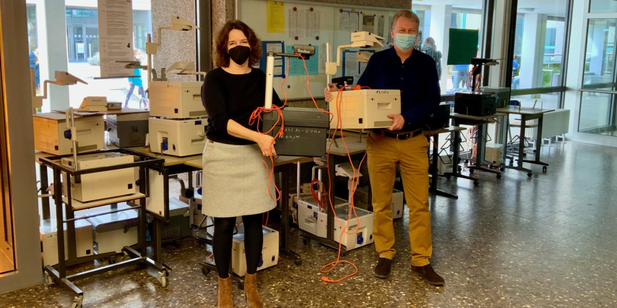 Als Stephanie Knaup und Ralf Brameier noch selbst die Schulbank drückten (und das ist noch gar nicht so lange her!), galten sie als der Inbegriff der fortschrittlichen Medien: Die Overheadprojektoren erlaubten es, Texte und Bilder (in Farbe!) an die Wand zu werfen, Vorlagen für Wandgemälde zu vergrößern, Arbeitsergebnisse einzelner Schüler*innen auf einen Schlag für alle sichtbar zu machen – kurz: OHPs waren seit ihrer Martkeinführung im Jahre 1960 das Highlight jeder Unterrichtsstunde, deren Einsatz nur von den fortschrittlichsten Lehrkräften gewagt wurde. Meist waren es damals die Referendar*innen, die die sperrigen Geräte auf quietschenden Ständern über die Schulflure von Klasse zu Klasse schoben. Durch die Digitalisierung und immer besser werdende technische Ausstattung der Schulen haben diese “Urgesteine der Unterrichtsgestaltung” nun endgültig ausgedient. Bis auf ein paar besonders gut erhaltene Exemplare verabschiedet sich das Pascal-Gymnasium nun von den in die Jahre gekommenden und mehr oder weniger zuverlässigen Geräten. In der ein oder anderen Schulerinnerung wird ihnen von vielen Schüler*innengenerationen bestimmt ein amüsantes Andenken bewahrt – merci bien!