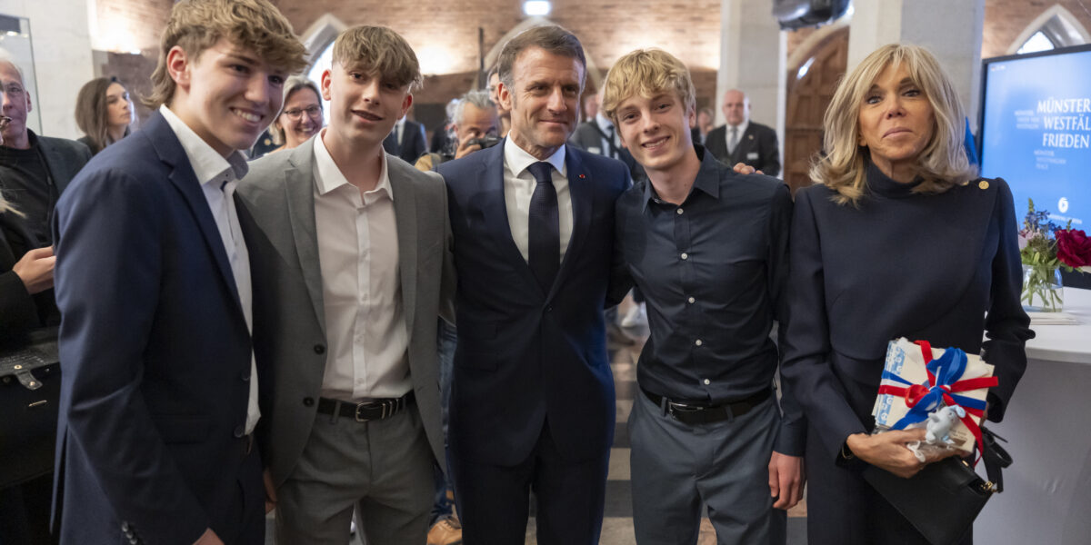 Am Dienstag, 28. Mai 2024, verlieh die Wirtschaftliche Gesellschaft für Westfalen und Lippe dem französischen Präsidenten Emmanuel Macron in Münster den Internationalen Preis des Westfälischen Friedens. Zu diesem Anlass waren Schüler des Pascal-Gymnasium im Rathaus, um ihm das vom Leistungskurs Französisch der Q1 von Angela Voges übersetzte Buch “Petite Paix, ton amie” (im Original: Der Kleine Frieden ist dein Begleiter) zu überreichen. Hier der Bericht von Peer Salow, Pierre Guillemot und Henri Baur: