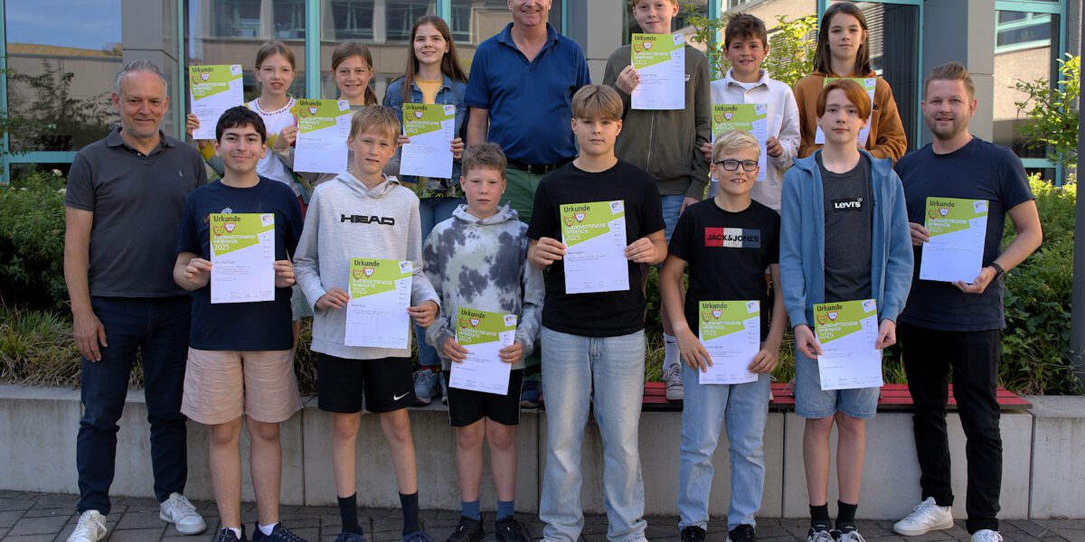 Schulleiter Ralf Brameier ließ es sich nicht nehmen, gemeinsam mit Markus Nienberg und Lukas Grüner die Preise und Urkunden für die 1. und 2. Platzierten der beiden ersten Runden zu überreichen. Viele unserer Teilnehmenden erreichten Top-Platzierungen in den ersten beiden Runden, und einige schafften sogar die Qualifikation für die dritte Runde!
