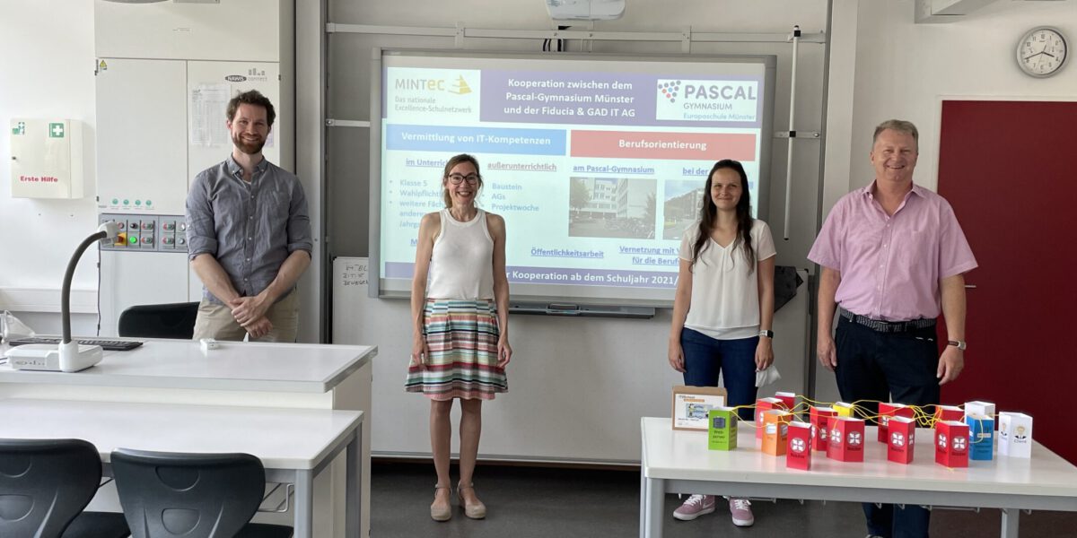 Zum Hintergrund: Das Pascal-Gymnasium ist Teil des nationalen Excellence-Schulnetzwerks MINT-EC und daher ständig bemüht, sein MINT-Profil weiter zu schärfen und den Schüler*innen ein breit gefächertes MINT-Angebot zu bieten. Die Kooperationsanfrage der Fiducia & GAD IT AG zur gemeinsamen Umsetzung des Projekts „IT2School – Gemeinsam IT entdecken“ stieß daher sofort auf offene Ohren.