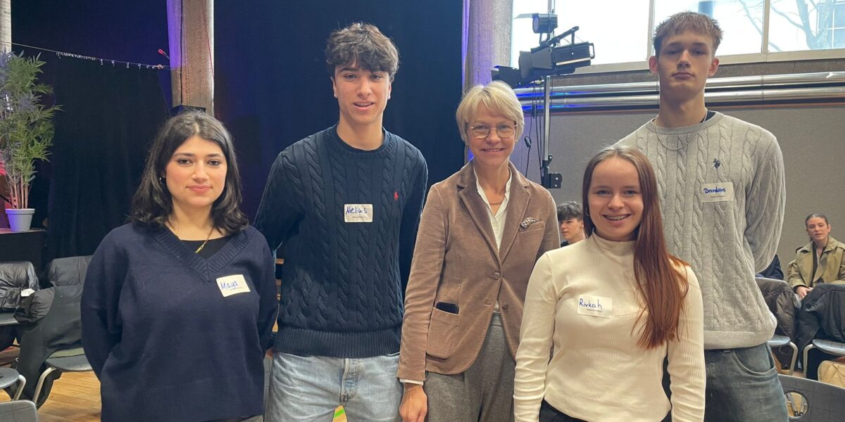 Vier Schüler*innen unserer Schülervertretung nahmen am Freitag, den 23. Januar 2026, an der Veranstaltung „Ministerin im Dialog – Jugend im Mittelpunkt“ in Münster teil. Eingeladen hatte die nordrhein-westfälische Schulministerin Dorothee Feller, die mit dieser Dialogveranstaltung gezielt die Perspektive junger Menschen in den Mittelpunkt stellte.