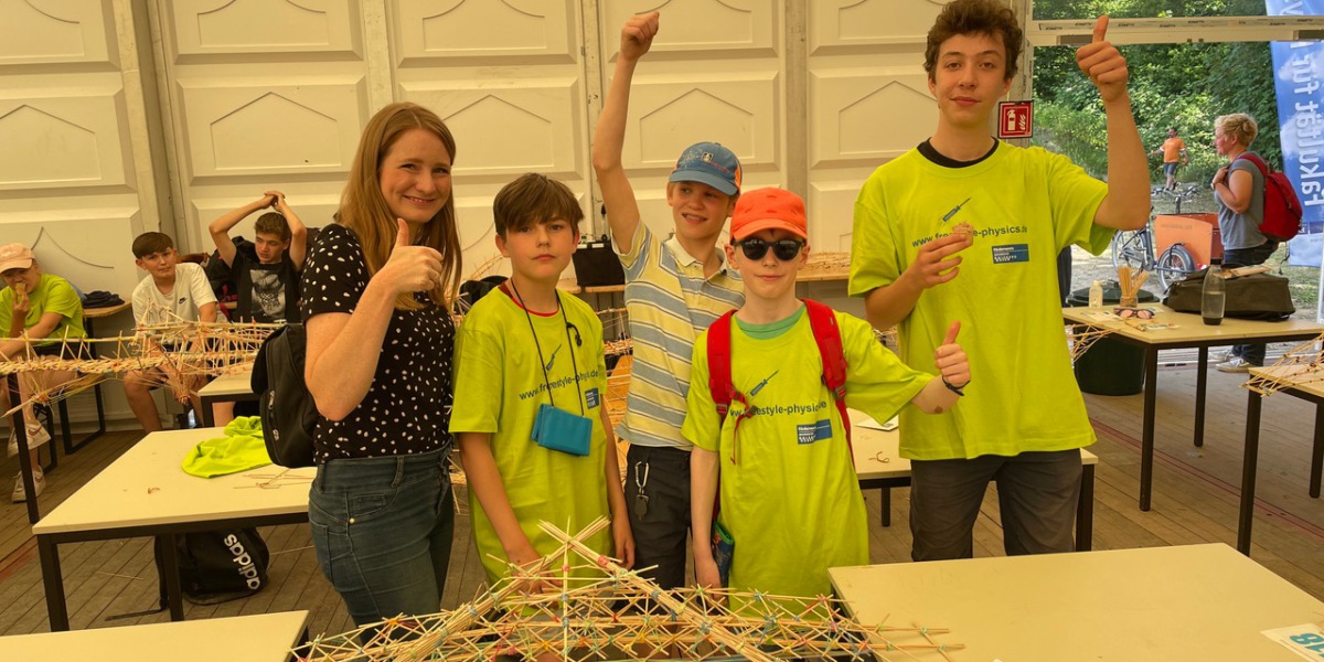 Neben der Präsentation ihrer Beiträge konnten die Schüler*innen dort auch Uni-Luft schnuppern: In verschiedenen Vorträgen und Workshops lernten sie etwas über Physik bei YouTube und die Planetenentstehung, es gab eine Physik-Show und zu Mittag gegessen wurde in der Mensa der Uni Duisburg.