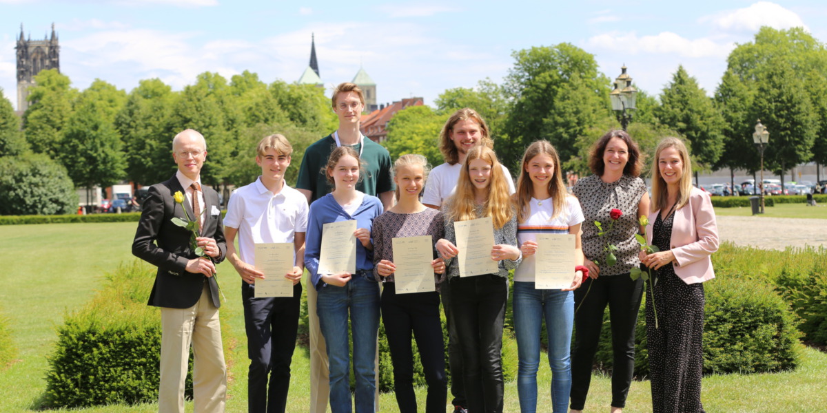 Seit Februar haben sie alle mit großem Fleiß und großer Ausdauer im Rahmen des Forder-Förder-Projektes zu selbstgewählten Themen recherchiert und haben ihre Einsichten in lesenswerten Expertenarbeiten dokumentiert, ein Engagement, das in einem festlichen Rahmen mit einer Urkunde ansprechend gewürdigt wird. Stephanie Knaup, die ebenfalls der Einladung ins Schloss gefolgt ist, überreicht den Pascaler*innen diese Urkunden beim anschließenden Festakt.