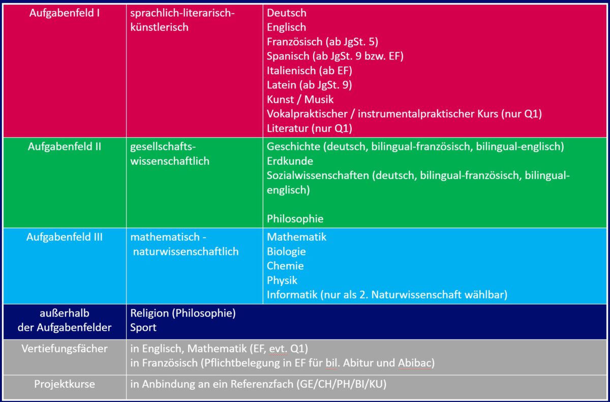 Aufgrund der Vorgaben des Landes für die Oberstufe können wir unseren Schüler*innen eine individuelle Schullaufbahn entsprechend den eigenen Neigungen und Leistungsschwerpunkten ermöglichen.